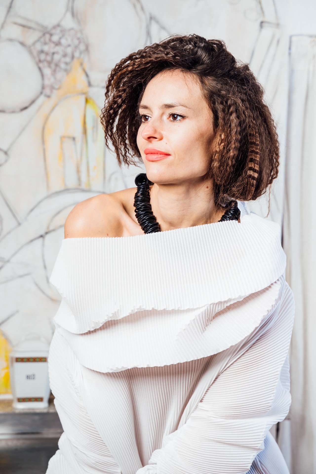 Bela plise tunika, pomlad-poletje, kolekcija House Queen