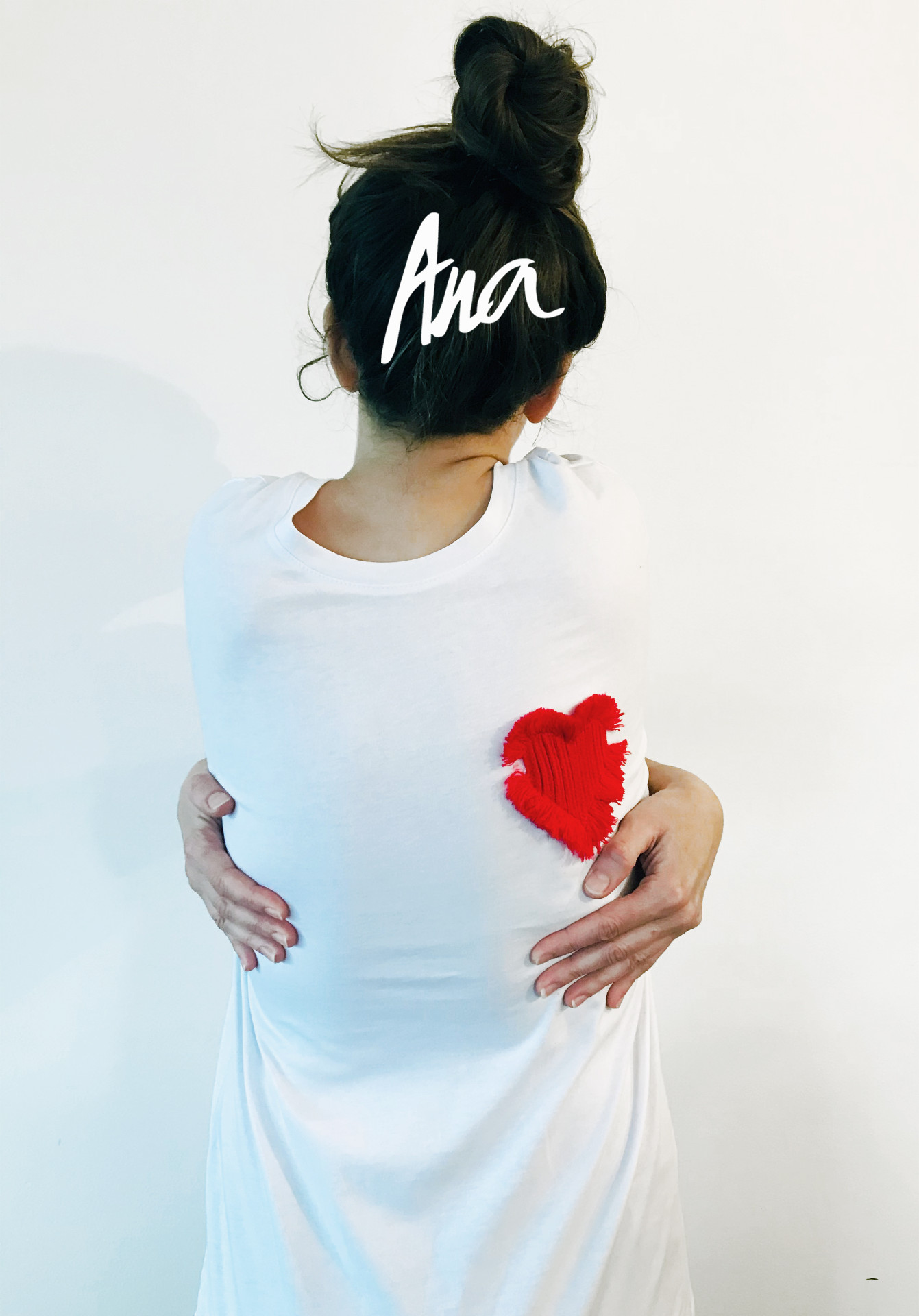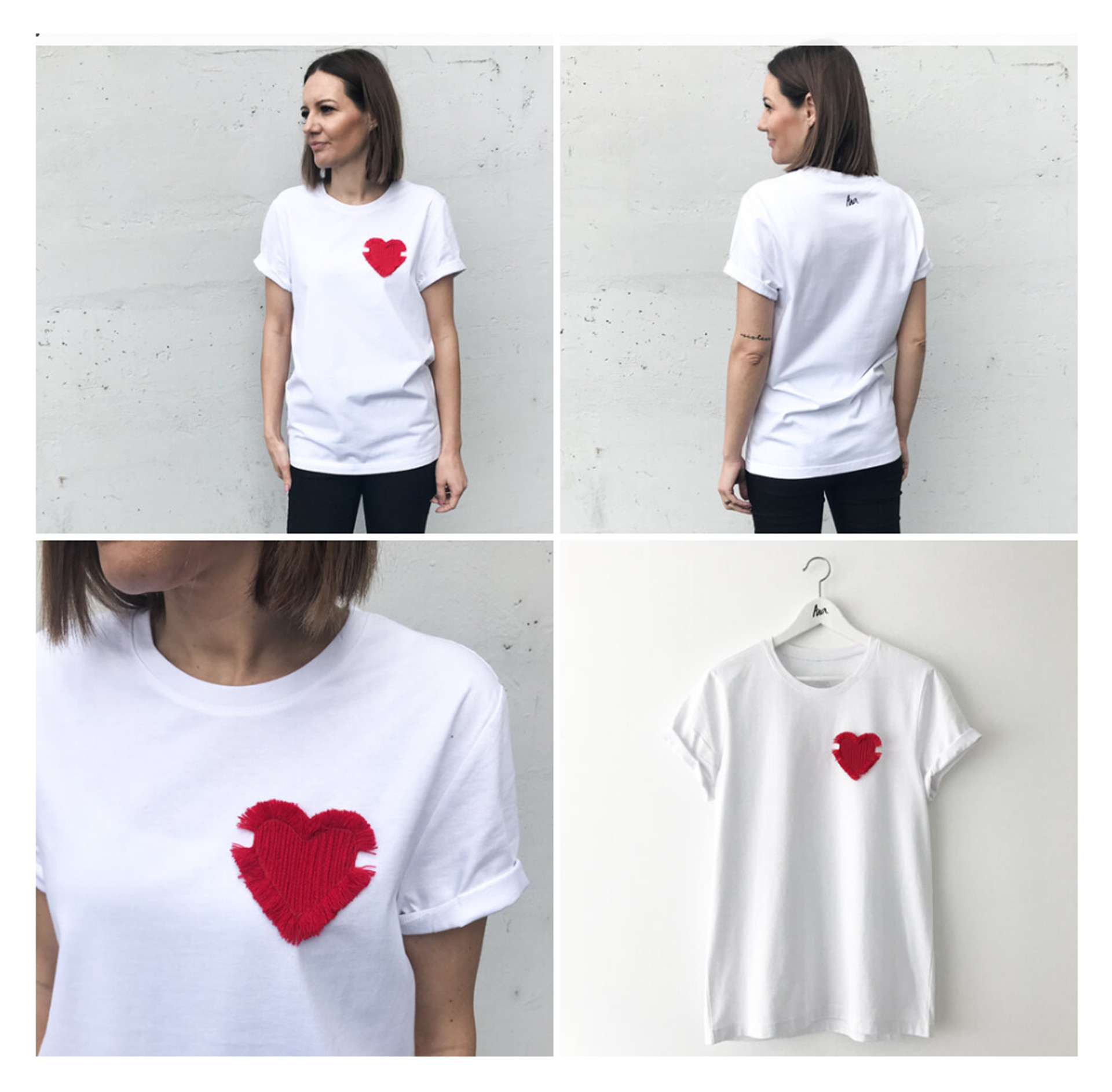 Bela majica s kratkimi rokavi z aplikacijo rdečega srca, velikost M/L, material 100% bombaž.